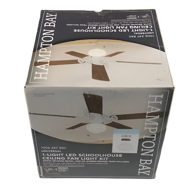 This ceiling fan light kit adds traditional charm and energy savings. This versatile kit includes 3 fitter finish options, white, brushed nickel and oil rubbed bronze, goes well with a variety of ceiling fan styles. Rated damp locations, it is suitable for covered porches and patios. Enjoy bright illumination and long-lasting performance from the included energy-efficient LED light bulb.