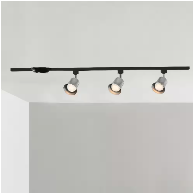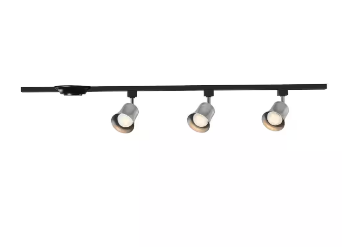 This Hampton Bay 3-Light Brushed Nickel Integrated LED Flared-Bell Linear Track Lighting Kit comes with everything you need to get up and running. It provides an abundance of light and sophistication to your interior space. It features multi-directional lamp heads to provide light to difficult places where light does not reach. You can add additional heads, connect multiple kits together coupler sold separately using only 1 power supply or create design patterns with additional track lighting components sold separately The power supply can be attached anywhere along the track and the entire system is ceiling or wall mountable.