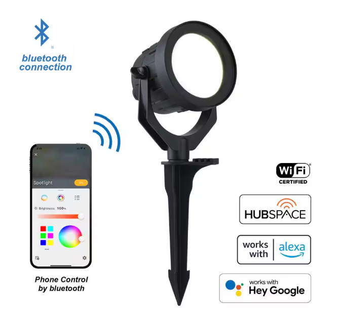 This Low Voltage smart light offers color adjustable Integrated LED lighting. Sturdy, aluminum waterproof construction allows light to withstand any weather. Simply plug-in and connect this waterproof outdoor flood light to your existing low voltage system or can be connected to a new 12-Volt transformer low voltage system (sold separately). You can control these lights with Hubspace app right from your Android phone or iPhone to enhance curb appeal, provide an extra sense of security at night, create ambiance, and showcase key features of your landscape. This super bright flood light is 60-Watt equivalent light output while only using 10-Watt.