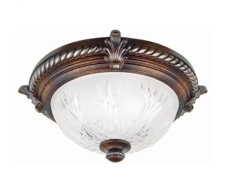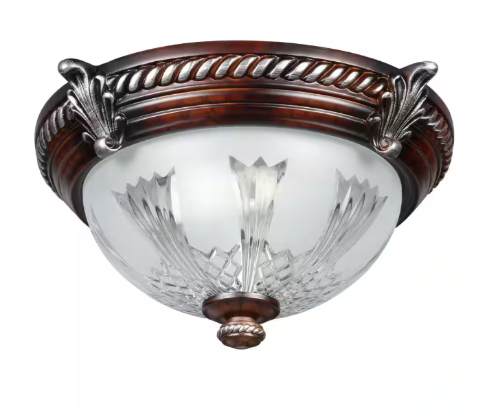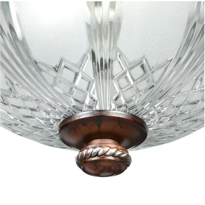 Rich and elegantly styled, the Bercello Estates 2-Light Volterra Bronze Flushmount from Hampton Bay will complement a variety of home styles and decor. A simple way to upgrade your bedroom, hallway or den, this fixture features a dark volterra bronze finish that is beautifully contrasted with a clear and frosted glass shade with striking carved details. Easy to install, pair with other pieces from the Bercello Estates Collection for a custom and polished look you will cherish and friends will admire.