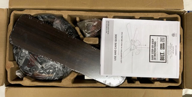 The Clarkston 44 in. brushed nickel ceiling fan is a great option for low ceilings and small rooms. This close to ceiling mount fan includes a modern brushed nickel finish with reversible blades in walnut and driftwood. In addition, this fan has 3 x 9-Watt energy efficient light bulbs included.