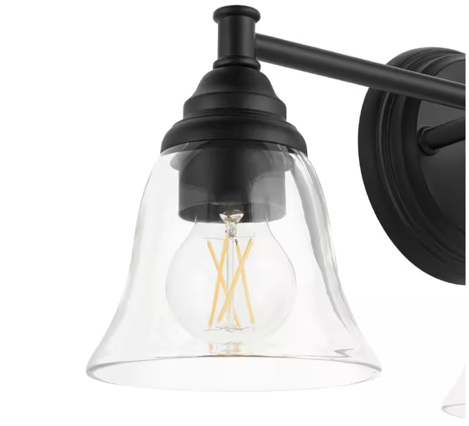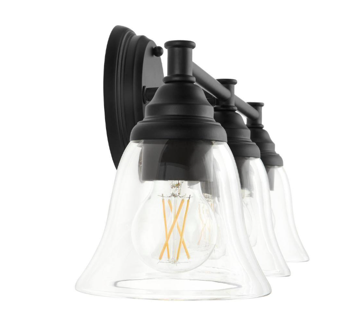 The Marsden family of light fixtures adds a transitional touch to your interior decor. With its sleek matte black finish and clear glass shades, the Marsden vanity light will light up the room and provide years of enjoyment. This wall-mounted light is perfect for bathrooms, bedrooms, and above mirrors in other areas of your home. Marsden bath vanity lights are easy to install with included instructions and hardware, and should be hardwired to an in-wall 120V power source. This vanity fixture requires (3) E26 60W max incandescent bulbs, or the LED equivalent, which need to be purchased separately. Be sure to check out other fixtures in the Marsden collection on this site.
