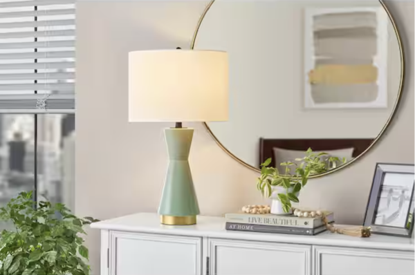Hampton Bay Melbourne 24 in. Sage with Gold Accents Ceramic Table Lamp