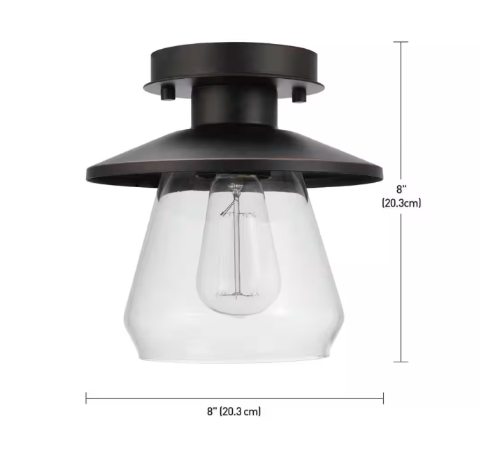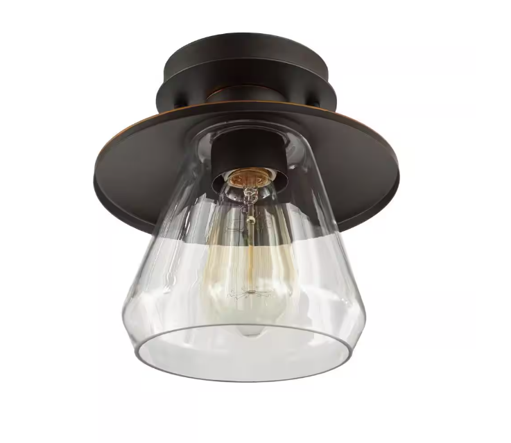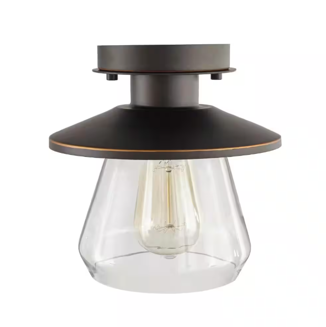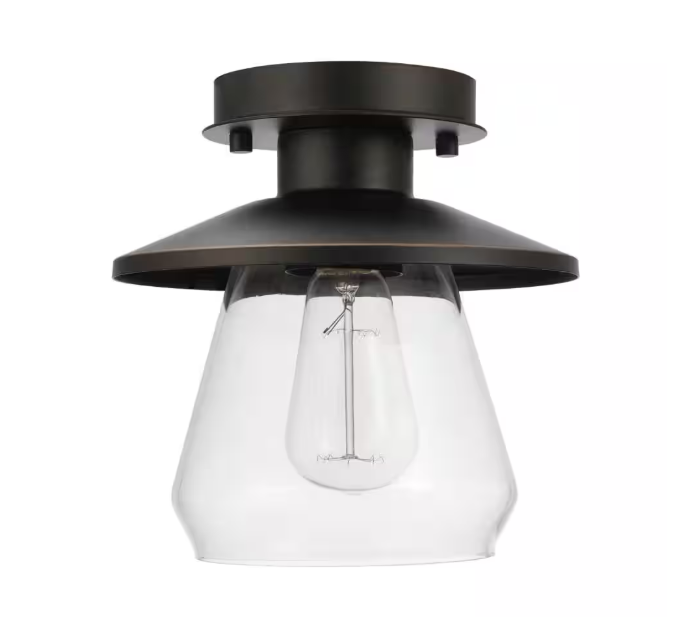 Hampton Bay Northmoore 1-Light Oil Rubbed Bronze and Glass Vintage Semi-Flush Mount