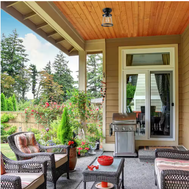 Hampton Bay Rigby 9.6 in. 1-Light Matte Black Round Flush Mount, Farmhouse Ceiling Light