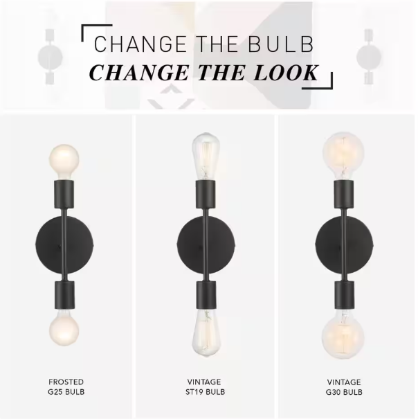 With its plug-in or hardwire collection, Hampton Bay created a wall sconce for all your lighting needs. Pared-back without being basic, this 2-Light Reversible Wall Sconce Vanity Light is the epitome of minimalist design. An open socket construction showcases the bulbs of your choice to bring forth a unique fixture that can truly show off your own personal style. Add vintage-look light bulbs or designer bulbs to easily upscale your light. The striking matte black finish blends easily with all interior design looks but doesn't sit idly by. Plus, this light can be mounted either vertically or horizontally to create perfect lighting designs for every space.