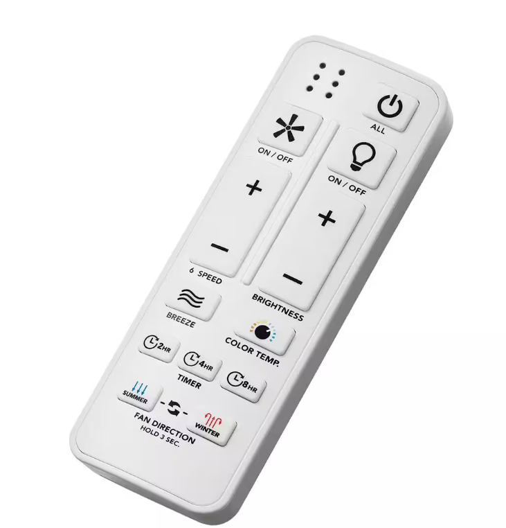 - Convenient hand held remote controls fan speed, light (on/off/dimming/color temperature) and comfort breeze mode (wall cradle included)