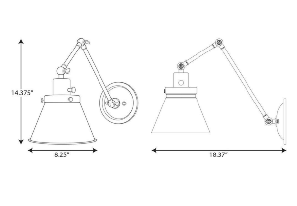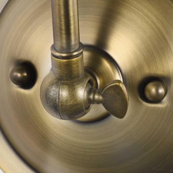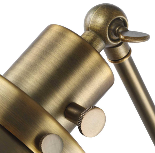 - Light fixture's signature adjustable arm is coated in a vintage finish and makes this wall light a favorite choice for when you want to read your favorite novel before bed