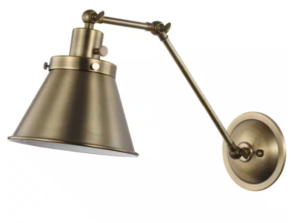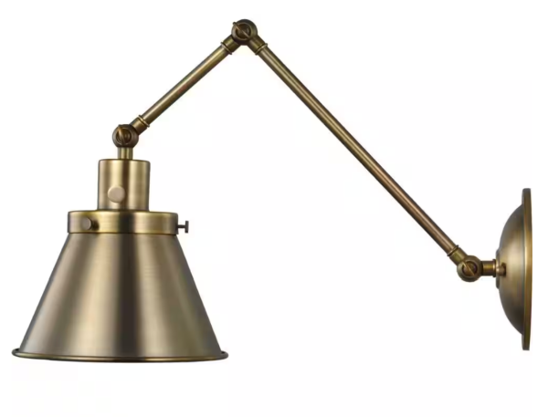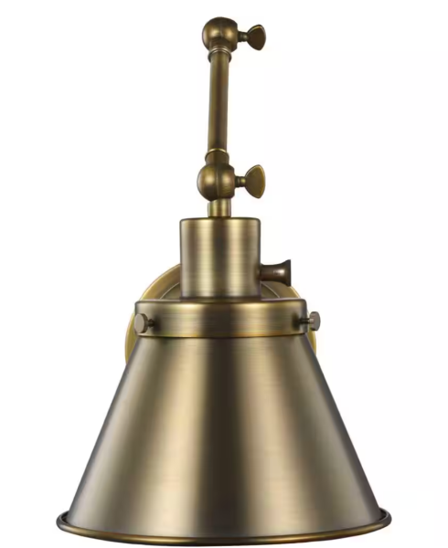 Hinton Collection 1-Light Gold Vintage Brass Swing Arm Adjustable Farmhouse Sconce