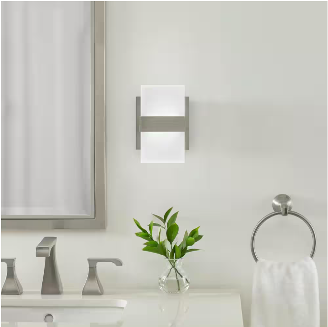 Enhance your bathroom or vanity area with the Alberson Collection 2-Light Brushed Nickel LED Vanity Light. This elegant fixture features a sleek brushed nickel finish and frosted acrylic shades, offering a modern and sophisticated look. With a total output of 588 lumens and a color temperature of 3000K, it provides bright, warm lighting that is perfect for grooming and daily tasks. The energy-efficient LED technology ensures long-lasting performance and reduced energy consumption, making it both a stylish and practical addition to your home. Also available in 3 or 4 Light option.