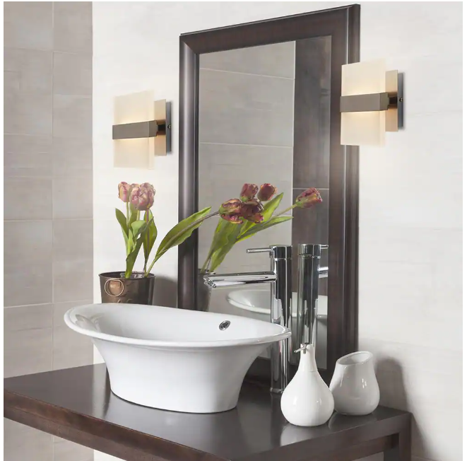 Home Decorators Collection Alberson 5 in. Brushed Nickel 2-Light LED Sconce