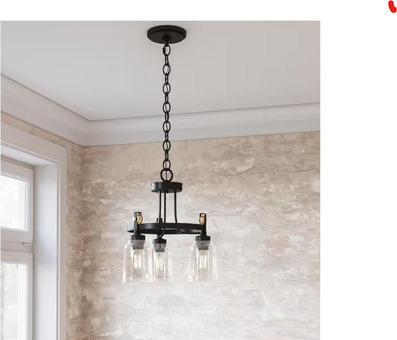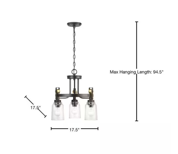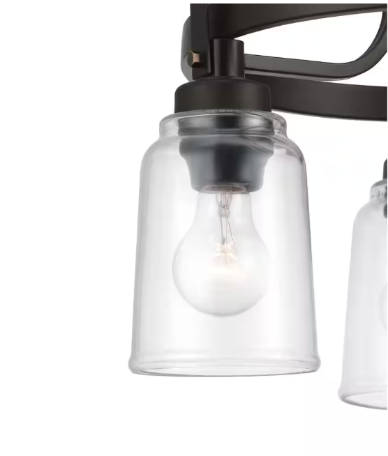 Influenced by a mid-20th century vintage industrial design, the Knollwood lighting collection has clear glass shades that will perfectly highlight the classic Edison bulb. The circular shaped 3-light antique bronze chandelier offers transitional style with timeless appeal. Incandescent medium-base blubs not included.
