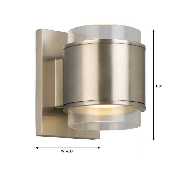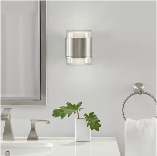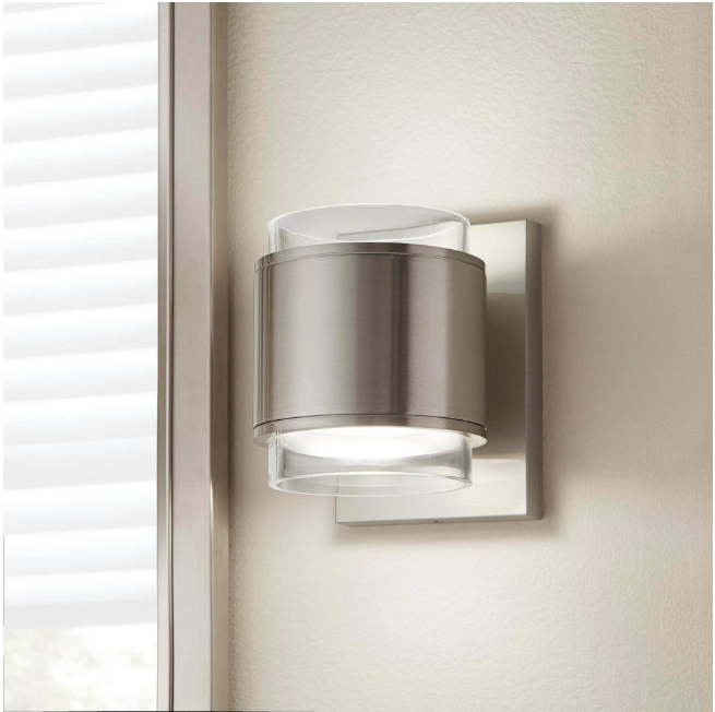 Illuminate your living space with this Energy Star rated LED Brushed Nickel Wall Sconce. This easy to install contemporary wall light features a brushed nickel finish paired with clear acrylic for a clean, minimalist appearance. Simple to maintain and simple to coordinate with other light fixtures, this wall light will help to maintain a polished look throughout your home.