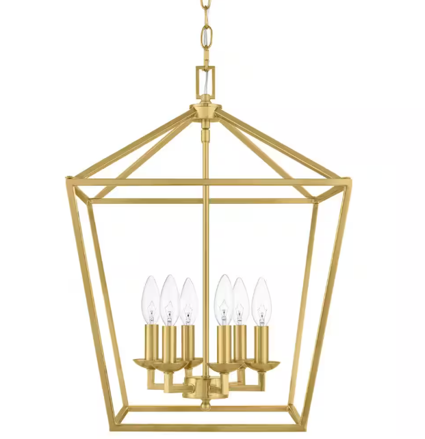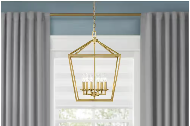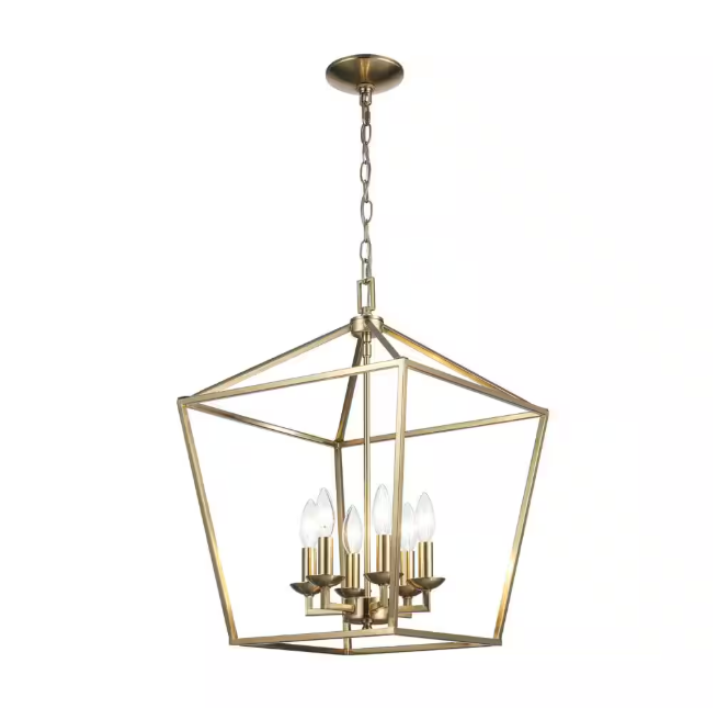 Home Decorators Collection Weyburn 6-Light Gold Farmhouse Chandelier Light Fixture with Caged Metal Shade