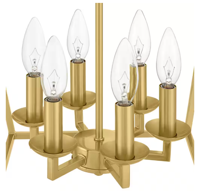 - Uses 6 candelabra E12 base 60-Watt bulbs, not included