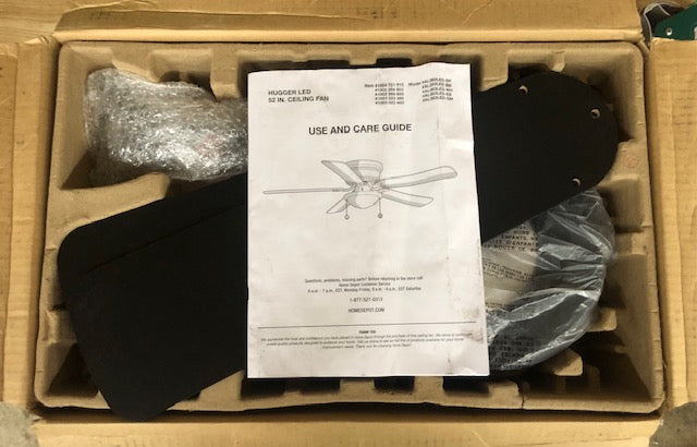 Hugger 52 in. LED Indoor Black Ceiling Fan with Light Kit