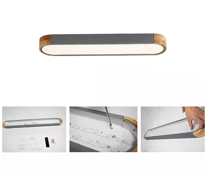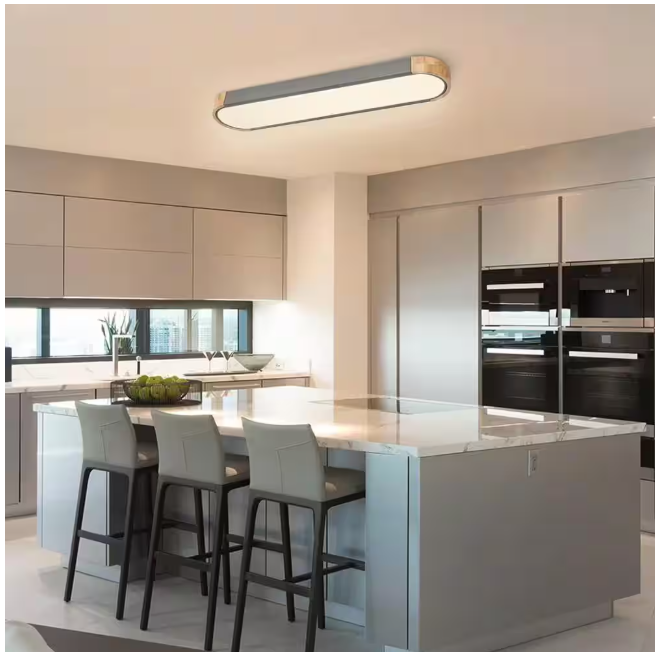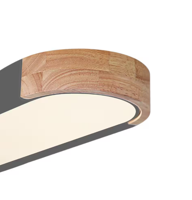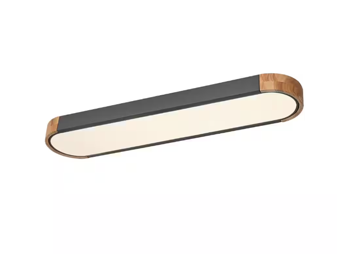 HUOKU Lumin 38 in. 1-Light Gray Integrated LED Flush Mount Minimalist Long Oval Wood Ceiling Light Warm Light 3000K