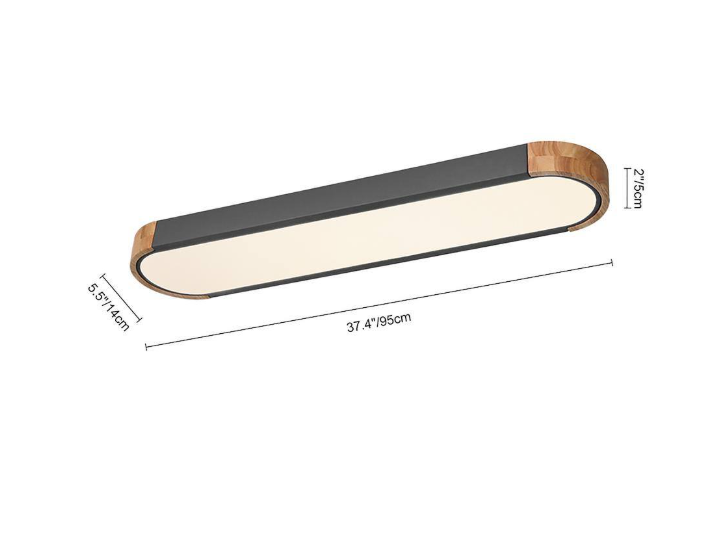 - Long oval flush mount LED light base dimension: 38 in. W x 2 in. H