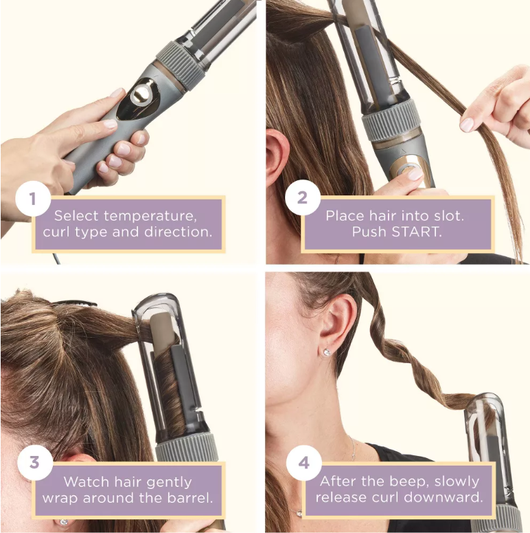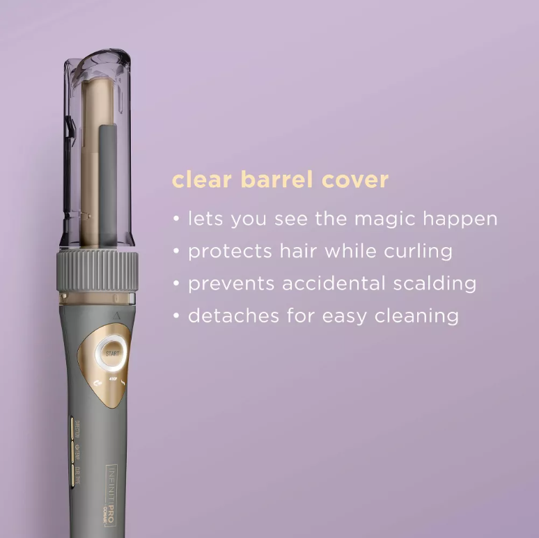 The InfinitiPRO by Conair® Curl Secret® is the new way to create curls that won't quit. Select a temperature, a curl type, and a curl direction, then place a section of hair into the slot. Push START and watch as hair gently wraps around the barrel. In moments, you can release hair from the styler to reveal the perfect curl! Styling is safe with the protective cover that keeps the hot barrel from getting too close to the scalp. The 8 ft. cord and auto-off technology ensure easy, stress-free styling. Choose from 3 preset curl types (defined, loose, or wavy), 5 heat settings for all hair types (300°F, 330°F, 355°F, 385°F, or 410°F) and 3 curl directions (left, right, or alternating). With different temperature, direction, and curl type combos, you control the results. The ceramic barrel heats up evenly for less damage and healthy-looking hair while tangle-free technology provides peace of mind. Make the magic happen every day, in every way, with Curl Secret.