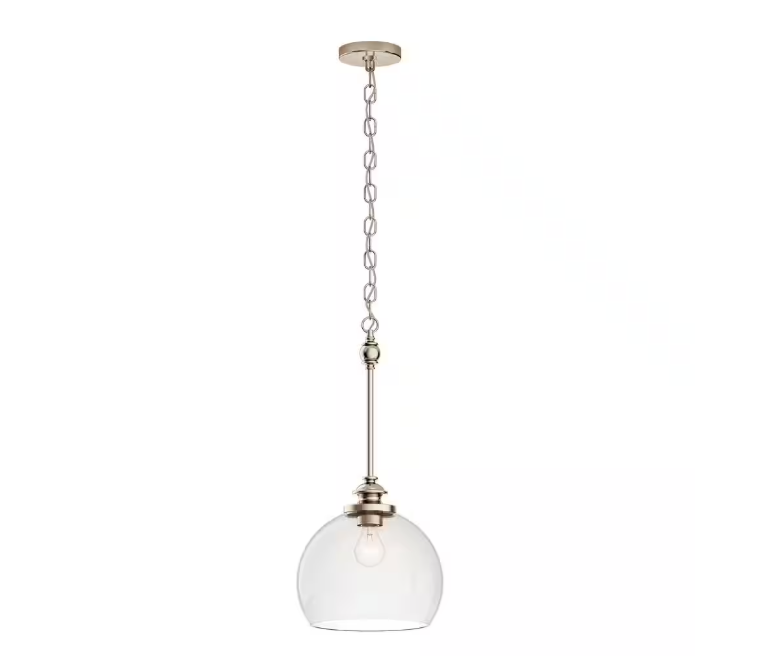 KICHLER Lecelles 1-Light Polished Nickel Traditional Globe Kitchen Pendant Hanging Light with Clear Glass Shade
