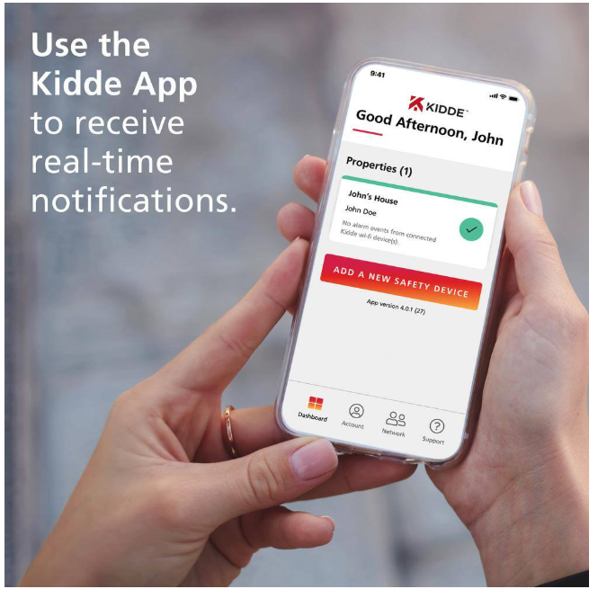 - Send mobile alerts through the Kidde app to notify family & friends of danger if smoke or poor air quality is detected in your home