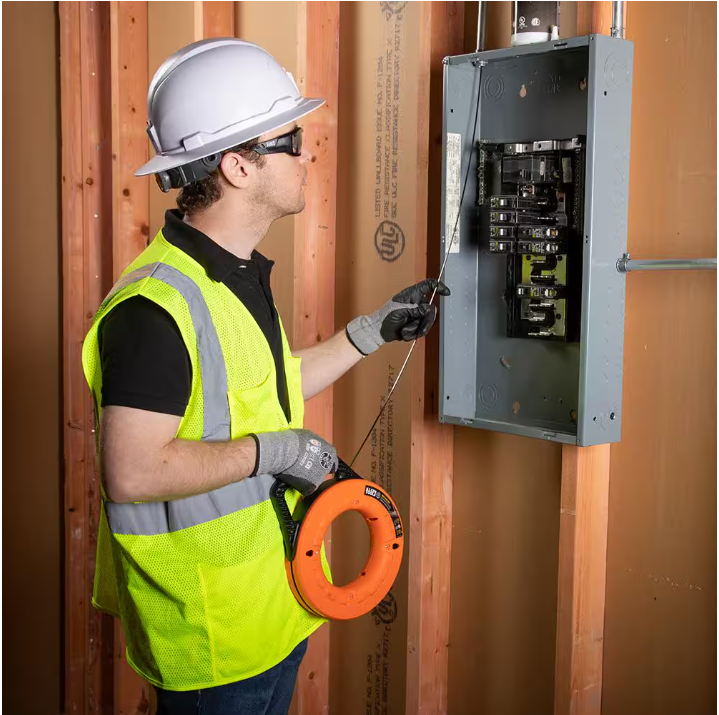 - Laser etched markings in 1-foot (0.3 m) increments allow you to more accurately measure the depth of conduit runs and determine the amount of tape left to pay out