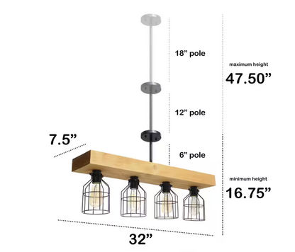 Add this rustic farmhouse pendant to your kitchen or dining room for a trendy update. This fixture features a charming, rustic wooden beam with black metal accents. Perfect for an industrial farmhouse home. Helpful tip: To get the complete industrial look, we recommend using a decorative Edison/Vintage bulb (not included).