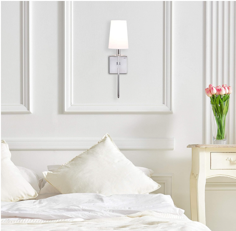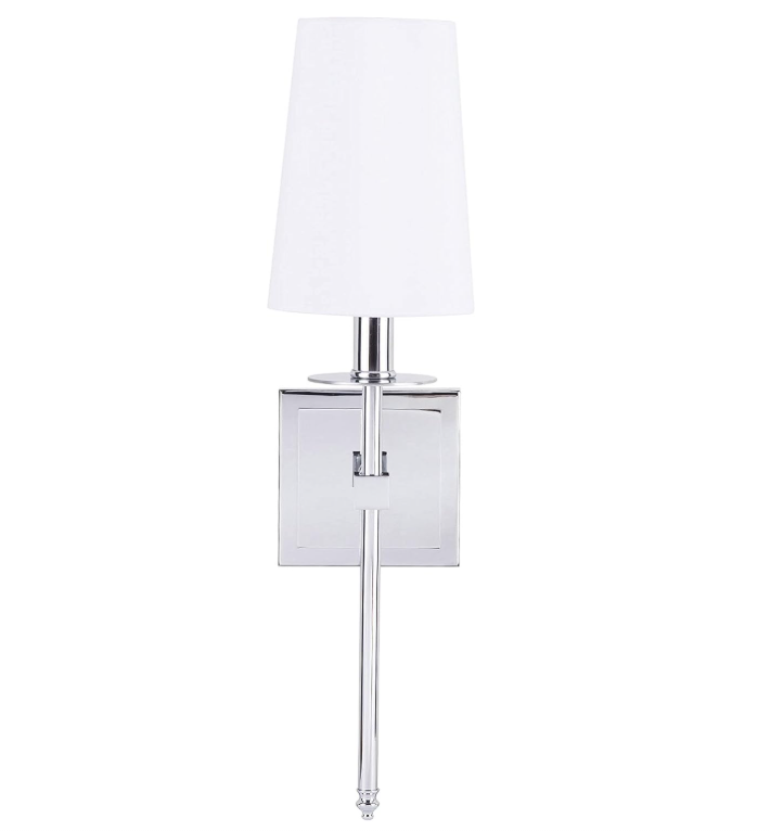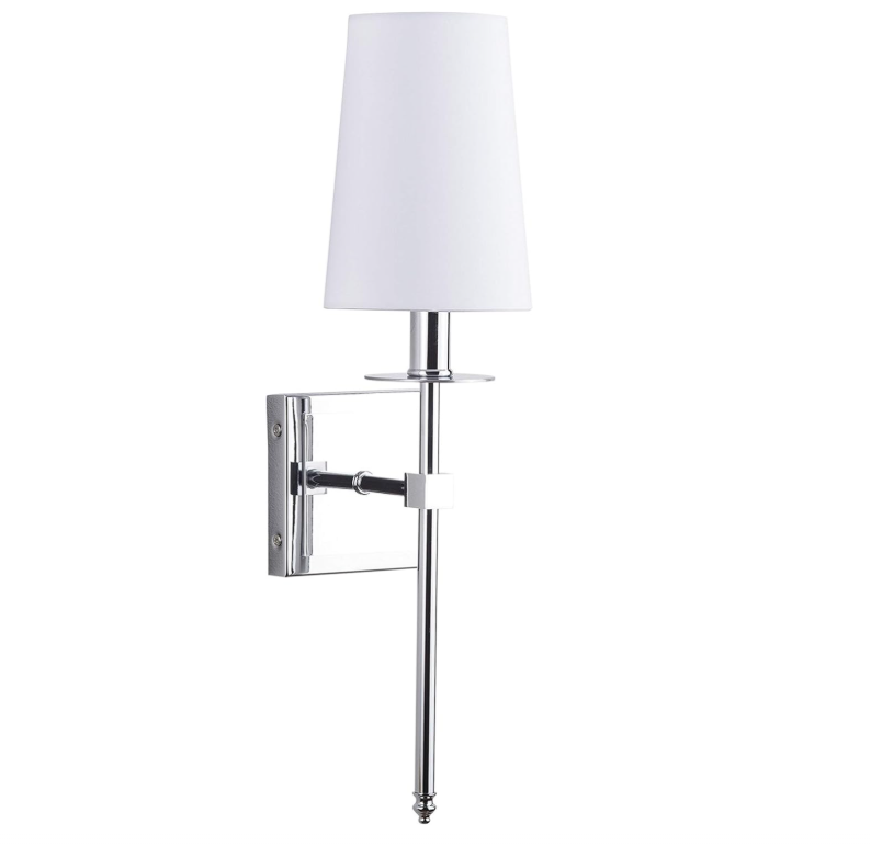 - MODERN WALL SCONCE WITH FABRIC SHADE - Polished Chrome sconce is perfect as a wall lamp for living room, wall lights for hallway, bedroom wall sconce or as a bathroom sconce vanity light beside mirror