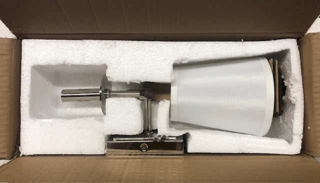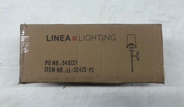 The Torcia wall sconce, made by Linea di Liara, brings a touch of contemporary sophistication perfect for bathrooms, bedrooms, corridors, entryways and living areas. This chrome light fixture has a white fabric shade that measures 7" high x 5" in diameter. The wall light itself is 20" high x 5" wide and extends 6" from the wall. The backplate is a 4.5" square and is compatible with most 4" octagonal, round and square or 2" x 4" junction boxes. It features an E26 socket that is compatible with a variety of incandescent, LED, CFL and halogen bulbs (60W max, sold separately) and is fully dimmable when used with a dimmable bulb and compatible dimmer switch. *Must be hardwired, there is not a switch or plug on the fixture itself.