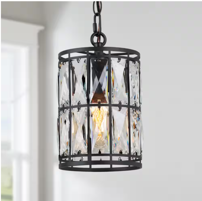 Lend a touch of elegance to your room with this Cristallo 1-Light Black Modern Coastal Mini Pendant Light Transitional Ceiling Mounted Light with Solid Crystal Shade. Simple and stylish, this mini black pendant hanging fixture is an elegant update for transitional and modern homes alike. Finished in black and featured multiple, rectangular, hand-crafted crystals. After being refracted by the crystal glass covers, the fabulous contemporary empire crystal pendant will form a stunning, dazzling, and colorful lighting effect to create a glamorous open concept kitchen ensemble, start by mounting a row of these lights over the kitchen island. The modern transitional pendant light fixture looks perfect for kitchen island, bedroom, hall, foyer, stairway, hallway, study, living room, farmhouse, warehouse, restaurant, cafe, hotel, club.