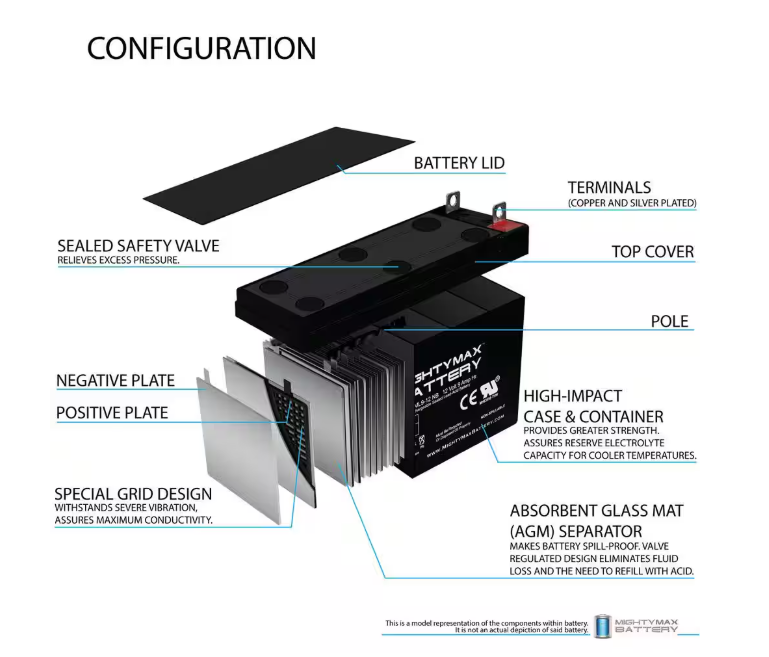delivering power when you need it, the Mighty Max ML9-12 12-Volt 9 Ah uses a state of the art, heavy-duty, calcium-alloy grid that provides exceptional performance and service life in both float and cyclic applications. The ML9-12 is an Absorbent Glass Mat (AGM) technology with a valve regulated design, that can be used in enclosed and indoor environments without leaking or maintenance, providing a superior performance for thousands of models. Mighty Max SLA batteries are utilized in a wide variety of applications including; Consumer Electronics, Electric Vehicles, Engine Starters, Golf Carts, Hunting, Lawn and Garden Tools, Medical Mobility, Motorcycles, Power sports, Portable Tools, Solar, Toys and Hobby, Access Control Devices, Emergency Lighting, Security and more.
