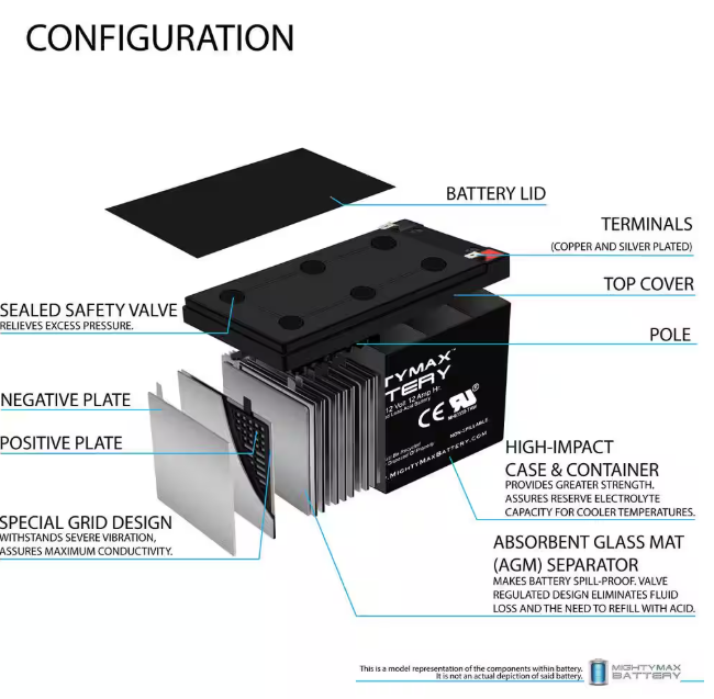 - Delivering power when you need it, the MIGHTY MAX ML12-12F2 12-Volt 12 Ah uses a state of the art, heavy-duty, calcium-alloy grid that provides exceptional performance and service life in both float and cyclic applications