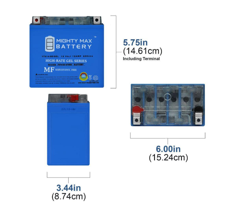 The YTX14-BS GEL is a 12-Volt 12 Ah GEL (Maintenance Free) battery. Requires no addition of water during the life of the battery. The MIGHTY MAX YTX14-BS GEL is a TRUE DEEP CYCLE battery that can be mounted in any position, requires no maintenance. When a GEL Cell battery is charged, no hazardous fumes escape the battery case, gases are processed within the battery itself. Common uses for the YTX14-BS GEL: ATVs, Motorcycles, Personal Watercraft, Jet Ski's, Snowmobiles and more.