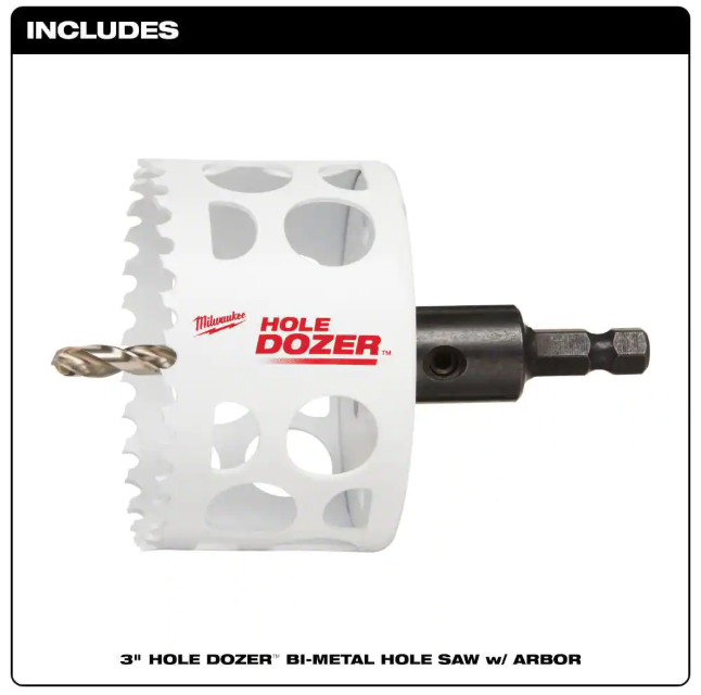 Milwaukee 3 in. Hole Dozer Bi-Metal Hole Saw with 3/8 in. Arbor & Pilot Bit