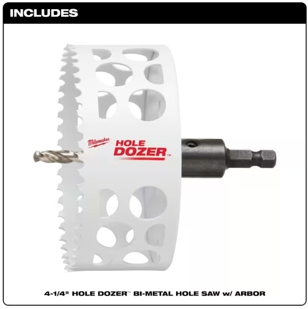 Milwaukee 4-1/4 in. HOLE DOZER Bi-Metal Hole Saw with 3/8 in. Arbor and Pilot Bit