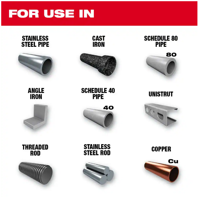 - For cutting materials 3/16 in. - 5/16 in. thick
