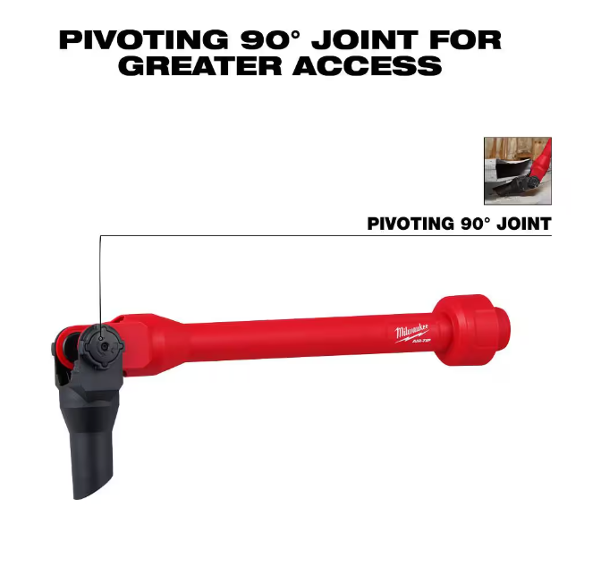 The MILWAUKEE AIR-TIP Pivoting Extension Wand provides greater cleaning access overhead and below with a pivoting 90 degree joint. At the click of a button, the extension wand can pivot 90 degrees to create an easier cleaning experience in situations overhead or below. The joint locks into place and ensures you can place additional 1-1/4" accessories on the end of the extension wand. The AIR-TIP Pivoting Extension Wand is compatible with other wet/dry vacuum brands that include 1-1/4", 1-7/8", 2-1/2" diameters, and is part of the AIR-TIP family of Trade Focused Vacuum Accessories.