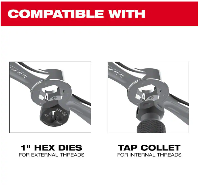 - Hex-LOK 2-in-1 Handle is compatible with 1 in. hex dies & Milwaukee Tap Collet