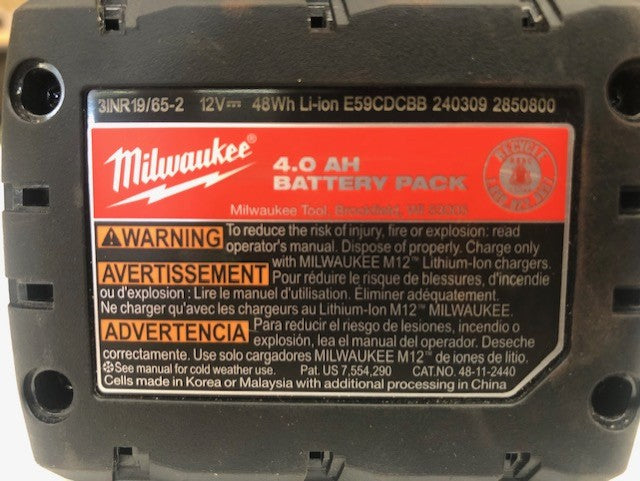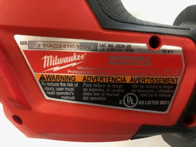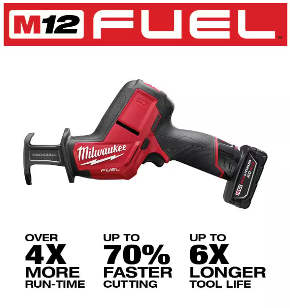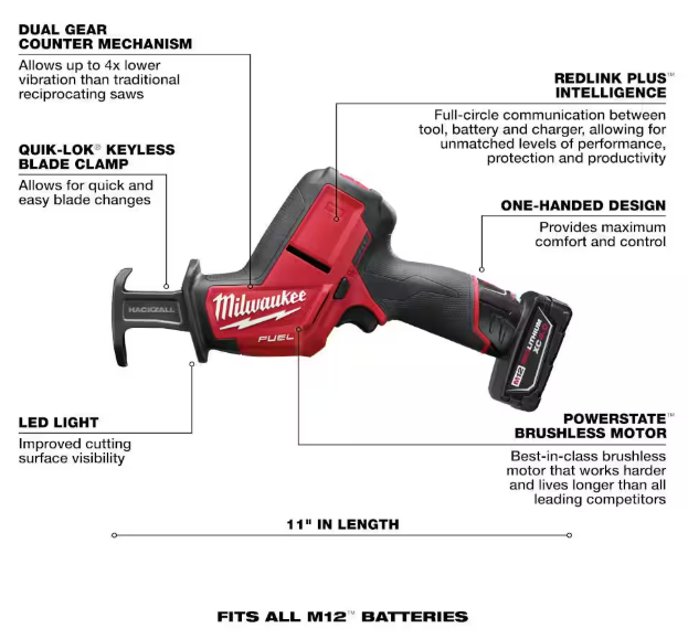 - Includes 2520-20 M12 FUEL Hackzall reciprocating saw, 48-59-2401 M12 lithium-ion battery charger, 48-11-2440 M12 redlithium XC 4.0 Ah battery and contractor bag