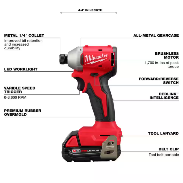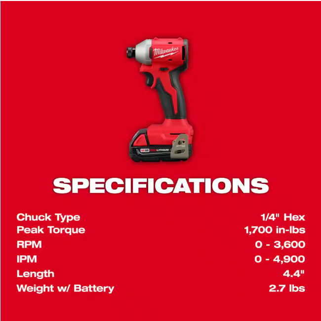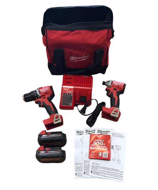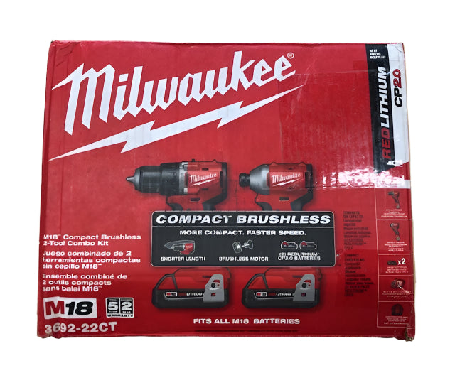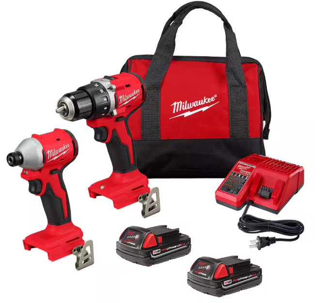 - Includes:M18 Compact Brushless 1/4" Hex Impact Driver (3650-20), M18 Compact Brushless 1/2" Drill Driver (3601), (2) M18 REDLITHIUM CP2.0 Battery Pack (48-11-1820), M18/M12 Multi-Volt Charger (48-59-1812), Contractor Bag