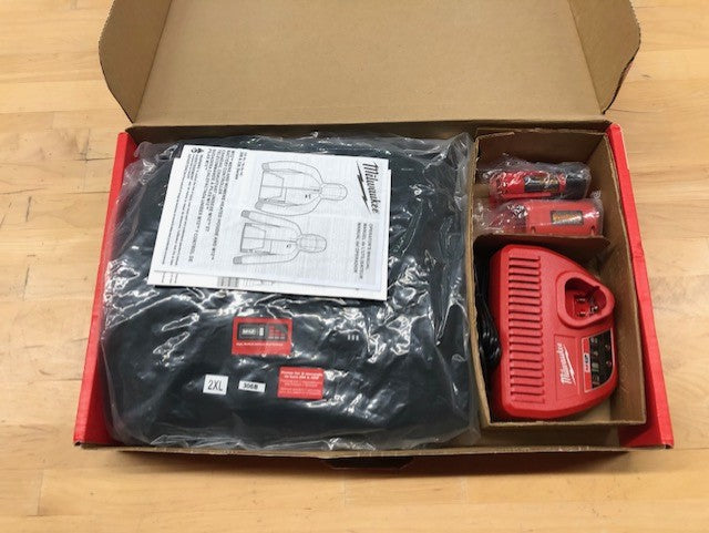 - Includes: (1) M12 heated hoodie (306-20), (1) M12 REDlitHIUM CP2.0 battery (48-11-2420), (1) M12 lithium-ion battery charger (48-59-2401), (1) M12 battery holder (43-72-1000)