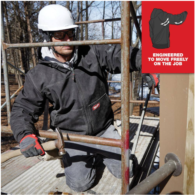 Part of the MILWAUKEE FREEFLEX Collection, the Softshell Jacket is BUILT FOR MOVEMENT. Constructed from durable, lightweight stretch fabrics, the FREEFLEX Softshell Hooded Jacket delivers unrestricted movement when layering on the job from fall to spring. The Softshell Jacket is designed with a brushed fleece interior, wind and water-resistant shell, and tough elastic cuffs to outlast the job and keep you comfortable all day. Milwaukee FREEFLEX products are developed in collaboration with feedback from users across the trades through continuous jobsite research.