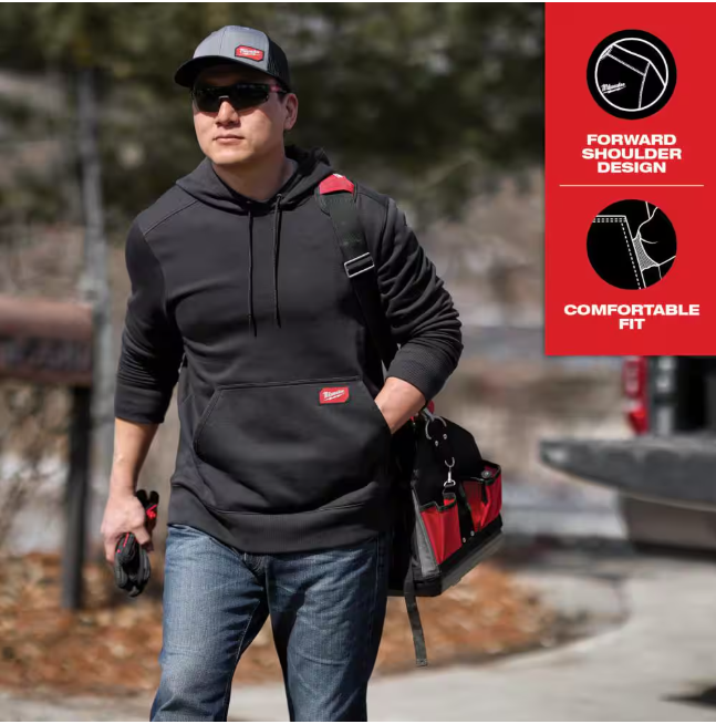 The MILWAUKEE Midweight Pullover Hoodie is EASY TO LAYER and MORE BREATHABLE. This midweight hoodie offers seasonal versatility while delivering on a trade focused design with drop shoulder seams and reinforced pocket seams. The comfortable fit and design allows you to move freely and easily on the job. Choose from Black, Brown, Gray, or Blue colors, available in sizes small to 3XL.