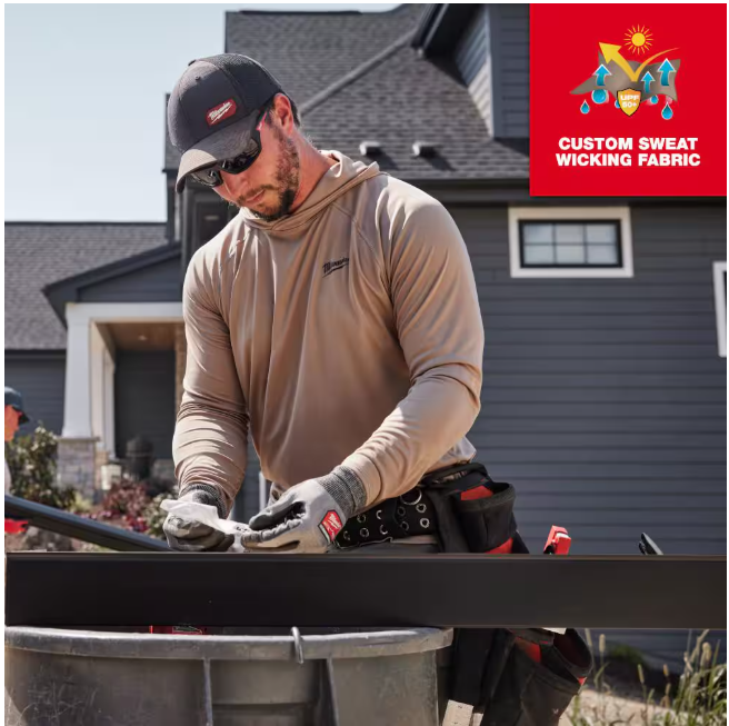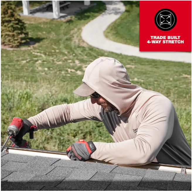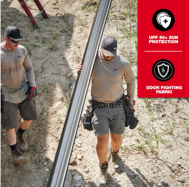 Part of the MILWAUKEE WORKSKIN Collection, the Hooded Sun Shirt is BUILT TO FIGHT SWEAT. Engineered with a custom sweat wicking fabric, the WORKSKIN Hooded Sun Shirt is designed to keep you dry and comfortable. Complete with UPF 50+ sun protection and odor fighting technology, this Sun Shirt is perfect for hot summer days on the job. Milwaukee WORKSKIN products are developed in collaborating with feedback from users across the trades through continuous jobsite research.