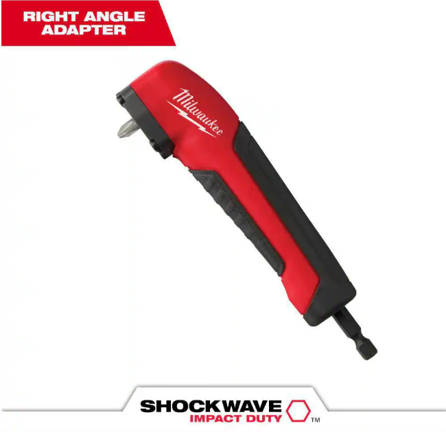 This Milwaukee Shockwave Right Angle Drill Adapter with its 1.4 in. slim profile provides access into tight areas. The Internal Shockzone absorbs peak torque and stops breaking. For increased torque transfer, it offers hardened gears. You can use it in both drill drivers and impact drivers and works with all 1/4 in. hex shank accessories.Made with custom alloy 76 steel, it allows years of use.