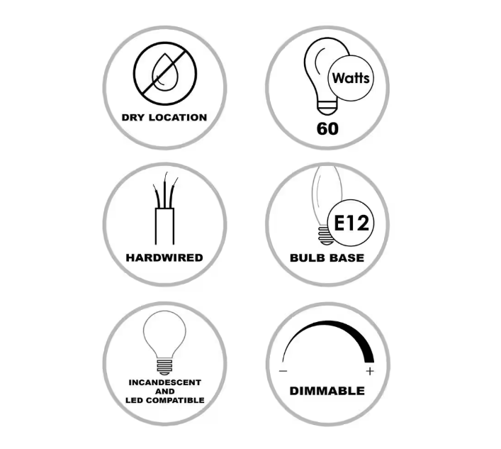 - Uses (3) candelabra E12 base 60-Watt bulbs, not included