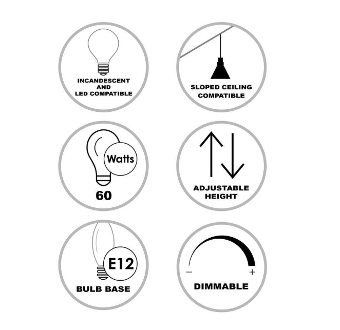 Adjustable Hanging Length, Dimmable, Sloped Ceiling Adaptable |