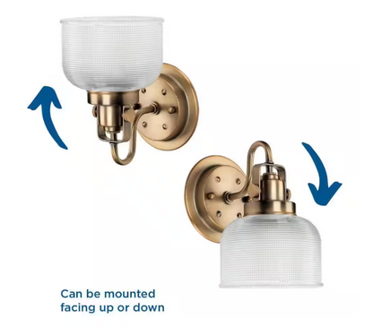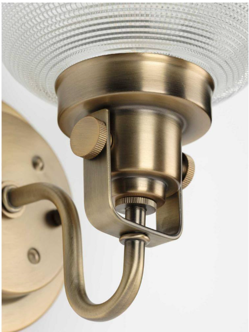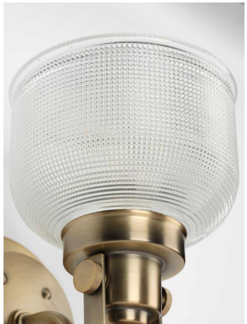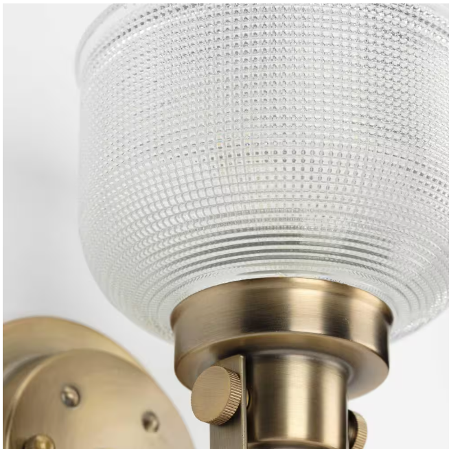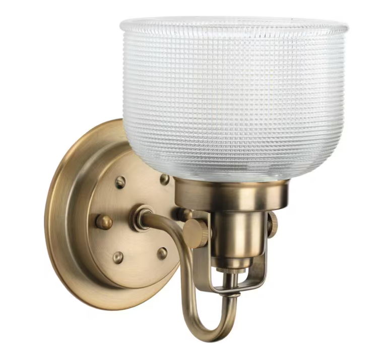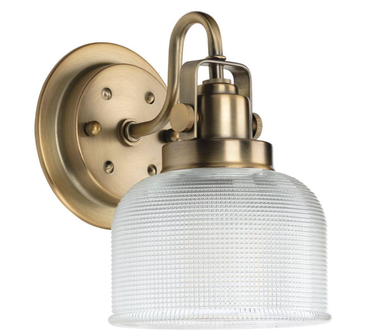 Progress Lighting Archie Collection 1-Light Vintage Brass Clear Double Prismatic Glass Coastal Bath Vanity Light