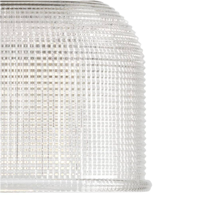 - Distinctive, double-prismatic glass shade adds visual texture while providing functional illumination