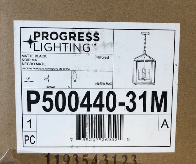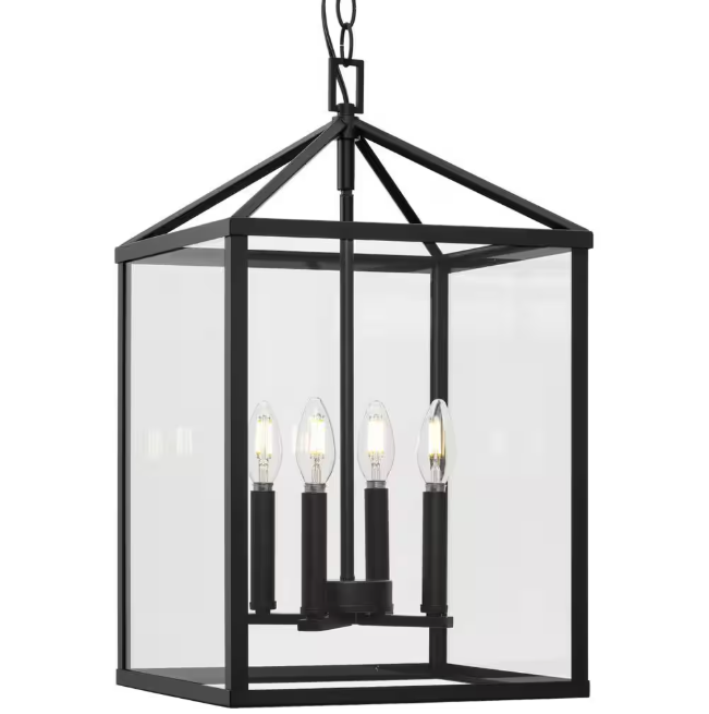 Progress Lighting Hillcrest 4-Light 13 in. Matte Black Modern Farmhouse Foyer Light for Halls